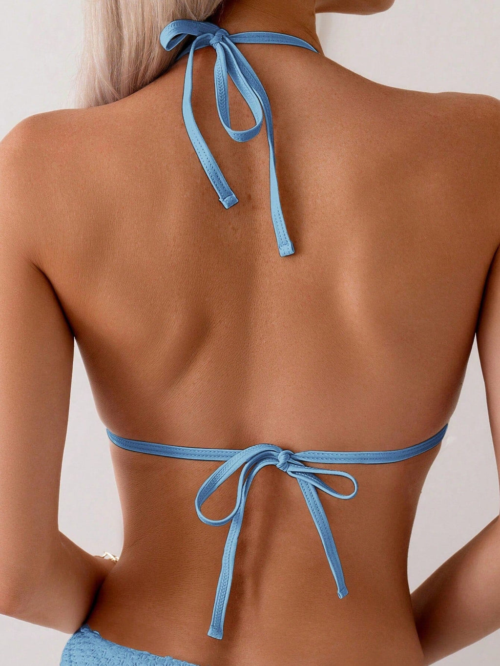 📐 Modelagem: Top com bojo e alças decoradas, calcinha de cobertura média