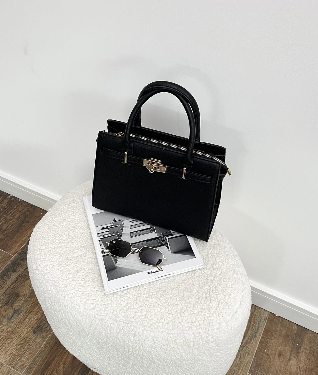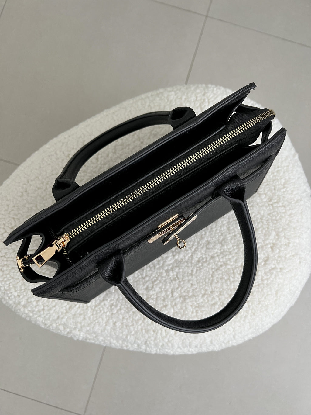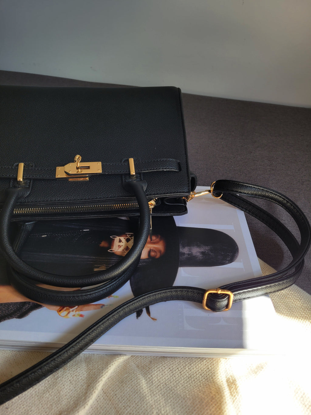Experimente a suavidade do PU sintético nos seus dedos enquanto desliza a mão sobre os detalhes em dourado. Com um zíper que se abre com facilidade e um botão que garante segurança, cada uso é uma confirmação de elegância e praticidade.