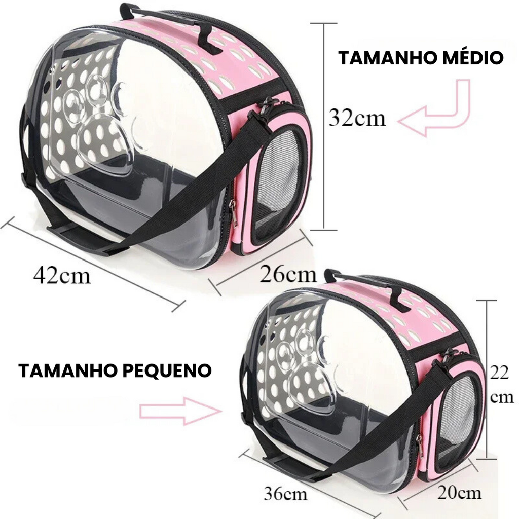 - Eficiência: Ventilação adequada que mantém seu pet fresco durante as viagens.