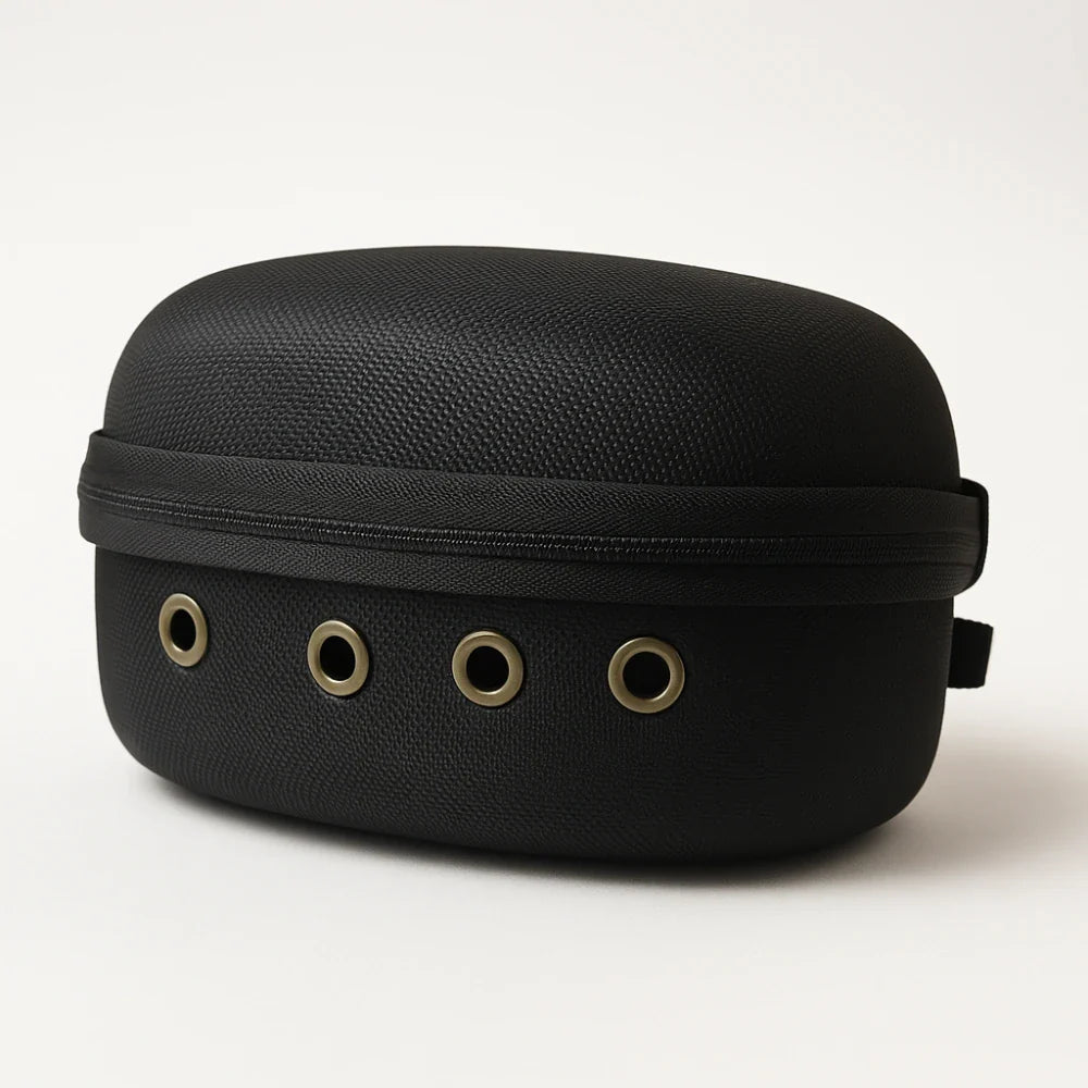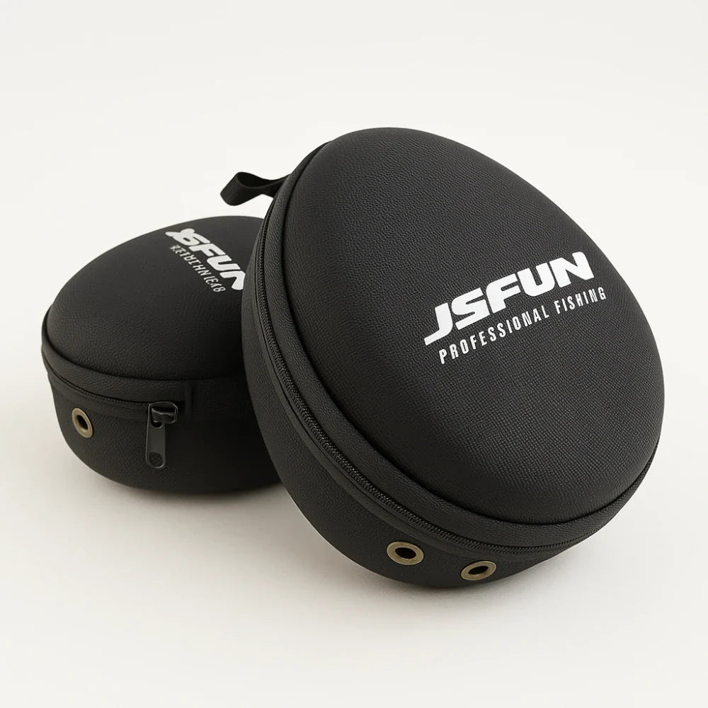 Bolsa de proteção para carretel de pesca, confeccionada em EVA e náilon resistente à água, com dimensões aproximadas de 12,5 × 15,5 × 8,5cm. Indicada para armazenar e proteger carreteis contra impactos, arranhões e desgaste durante o transporte ou armazenamento.