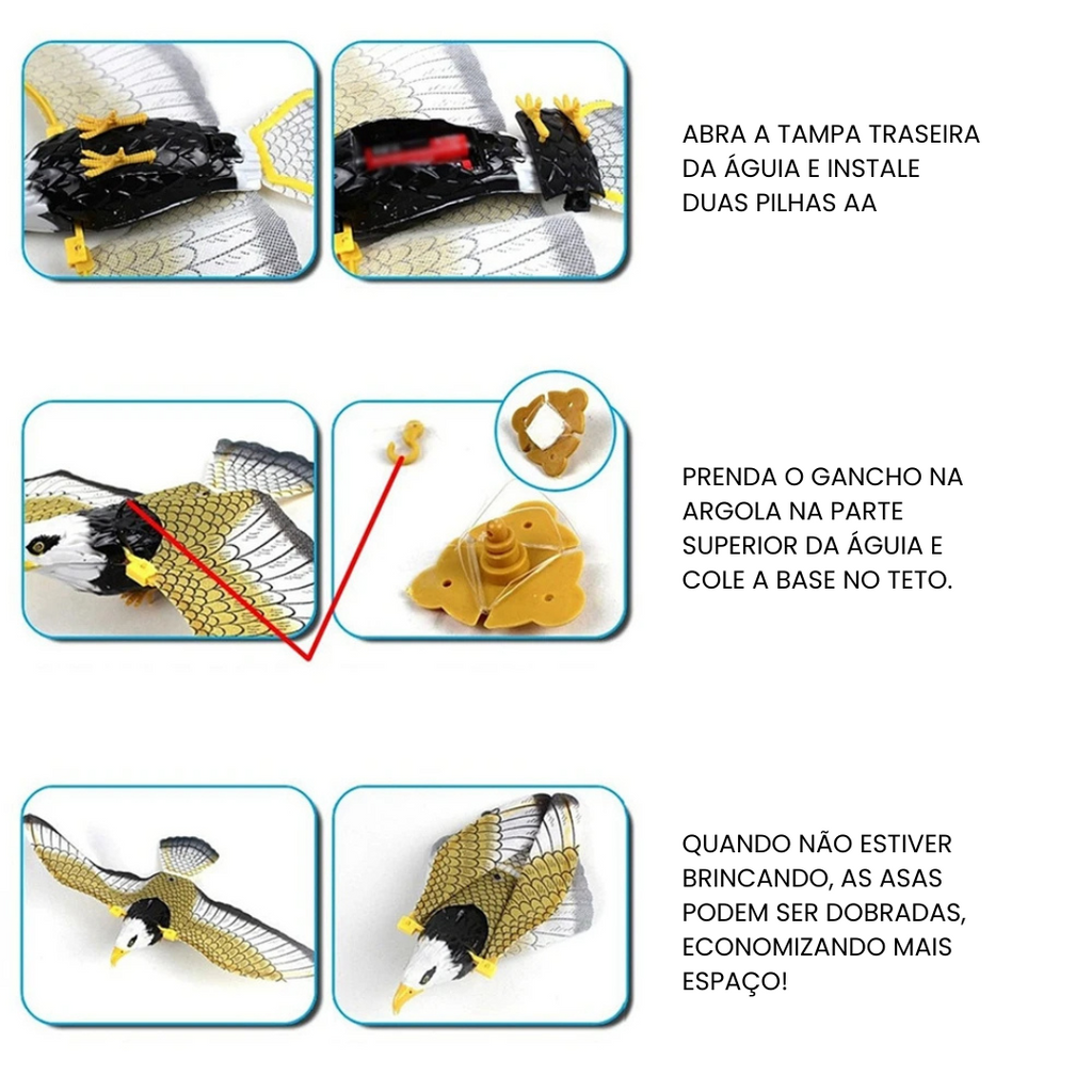 Desperte o instinto de caça do seu gato com o movimento realista da águia voadora elétrica. A cada voo, seu felino explora, pula e se diverte, enquanto os sons e movimentos capturam sua atenção de forma envolvente.