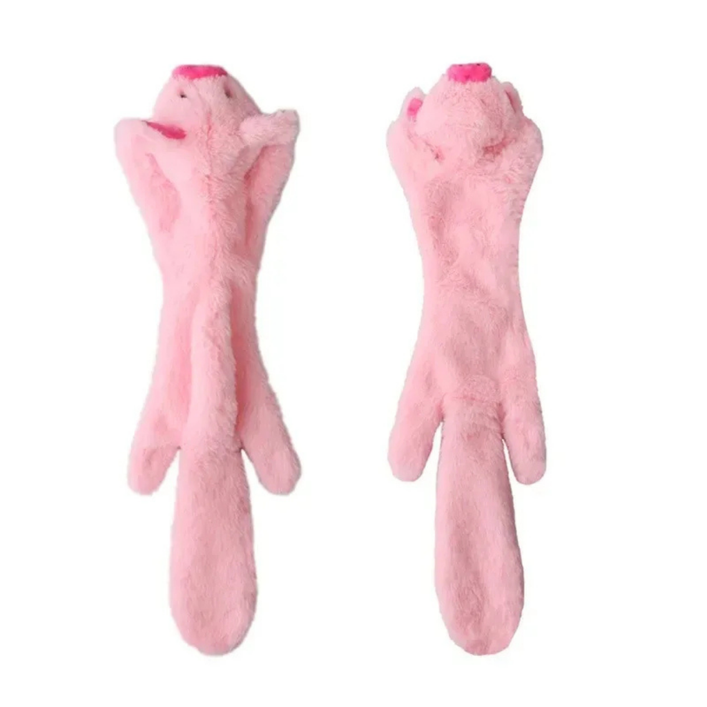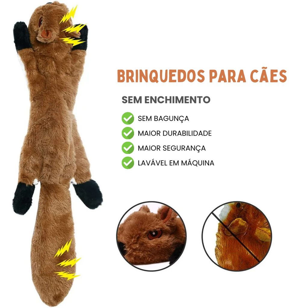 Sinta a alegria do seu amigo peludo enquanto ele brinca com nossa pelúcia resistente. O toque macio e a ausência de enchimento garantem momentos de diversão segura, sem preocupações.