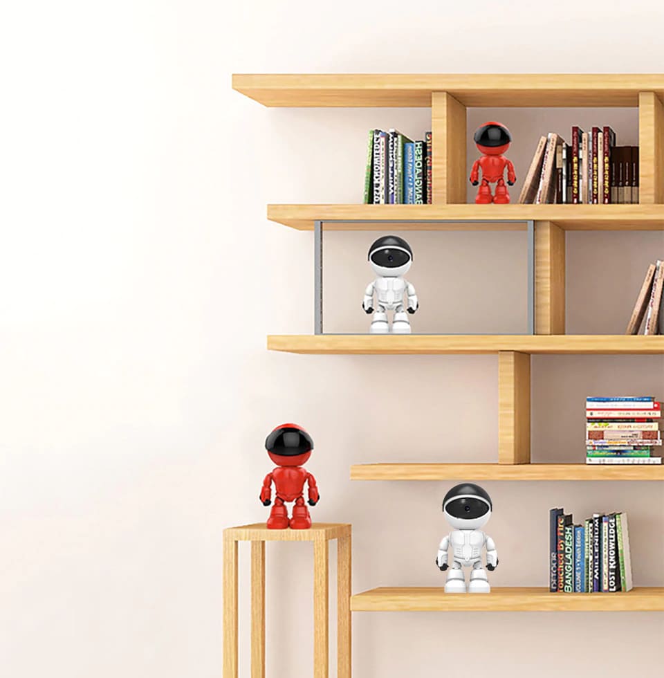 Câmera IP Wi-fi em formato de Robô com resolução de imagem Full HD 1080, visão noturna infravermelho e função auto-tracking com detecção de presença e movimento. Ideal para utilização como câmera espiã.