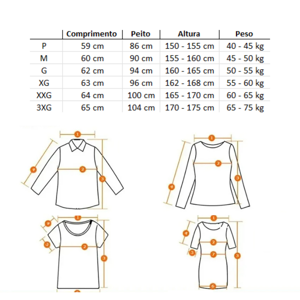 - Material: 100% Algodão, proporcionando conforto e durabilidade.