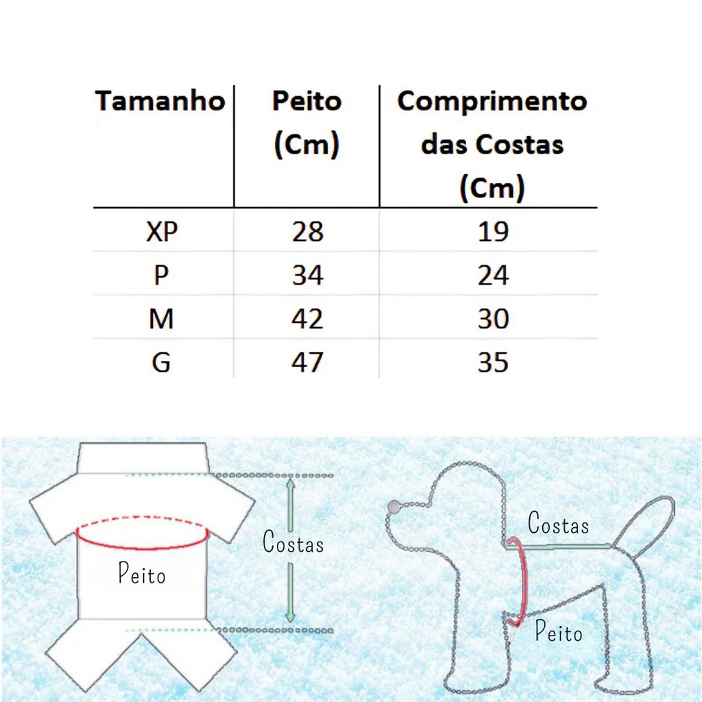 - Aconchego garantido: Material macio que protege seu pet do frio.