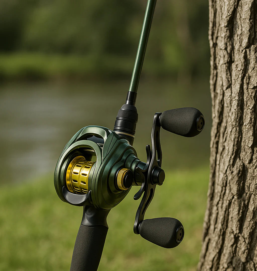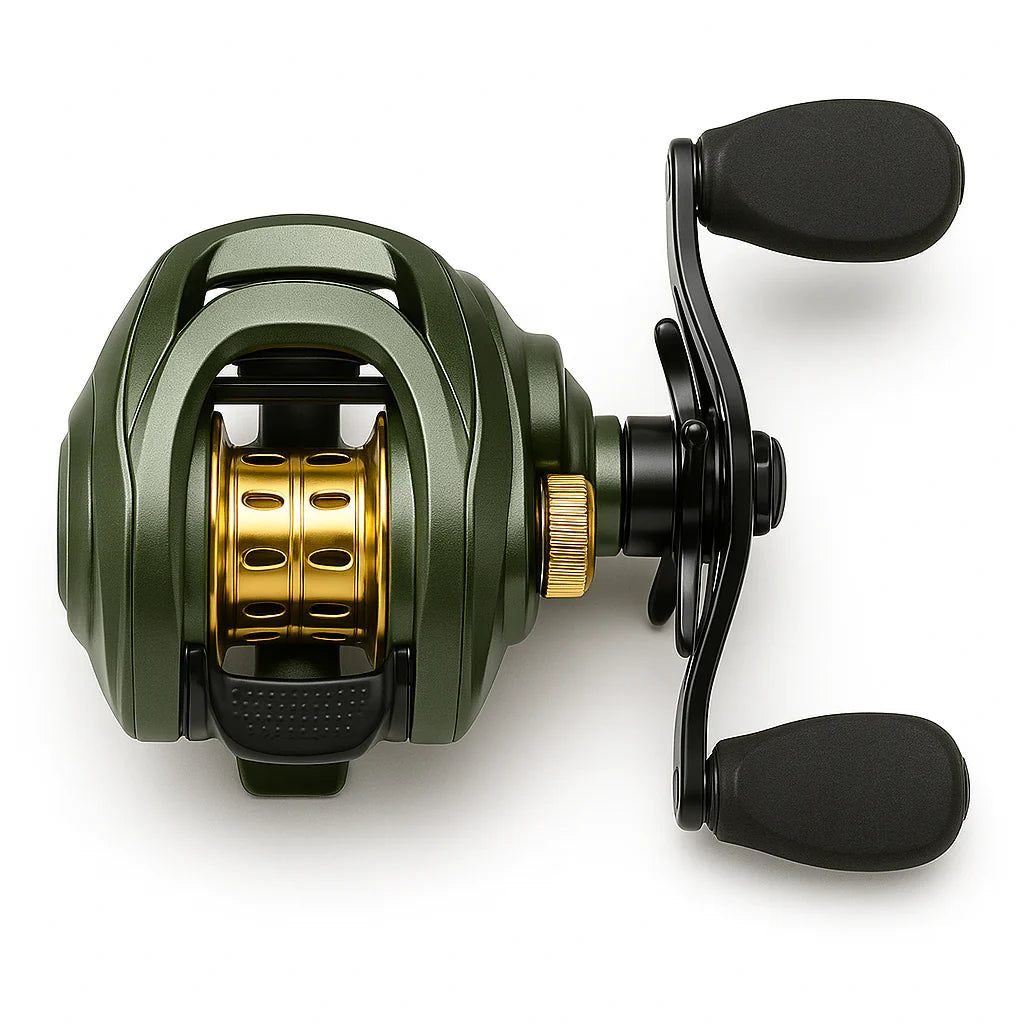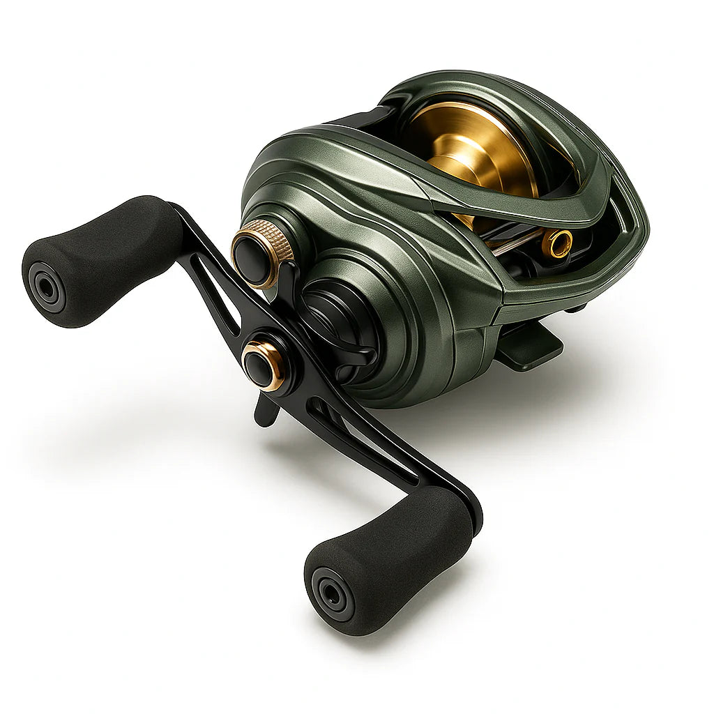 Carretilha perfil baixo projetada para arremessos de alta precisão, equipada com sistema de freio magnético FMB e carretel alongado em alumínio usinado que favorece a distribuição de linha e reduz o risco de cabeleiras.