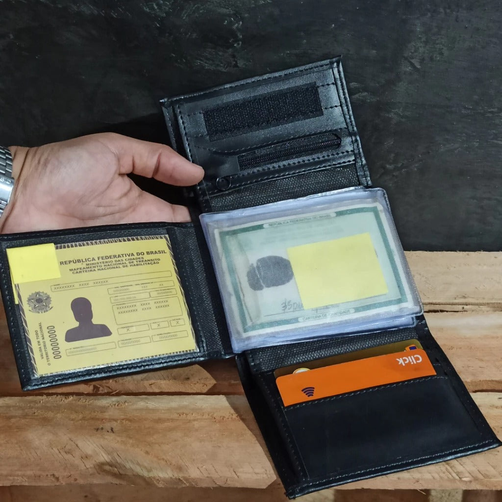 - 1x Carteira Masculina Couro Preta Compacta Cartões CNH