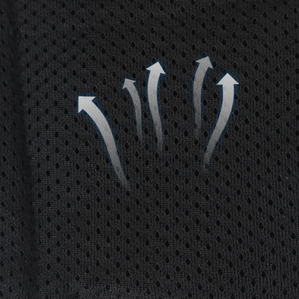 - Material: Tecido de malha respirável, proporcionando conforto e ventilação.