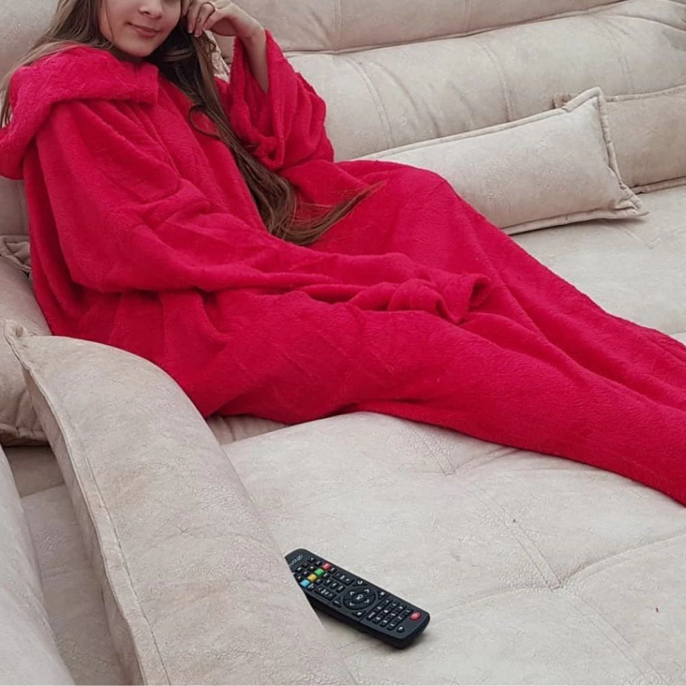 Imagine-se envolto em um cobertor macio, enquanto mantém a liberdade de se mover. O Cobertor Casaco Unissex com Mangas e Capuz transforma suas tardes em casa, unindo aconchego e praticidade em um só produto.