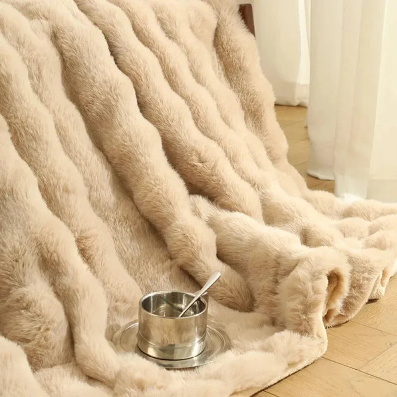 - Material Premium: Pelúcia de alta qualidade imitando a pele de coelho para uma suavidade excepcional.