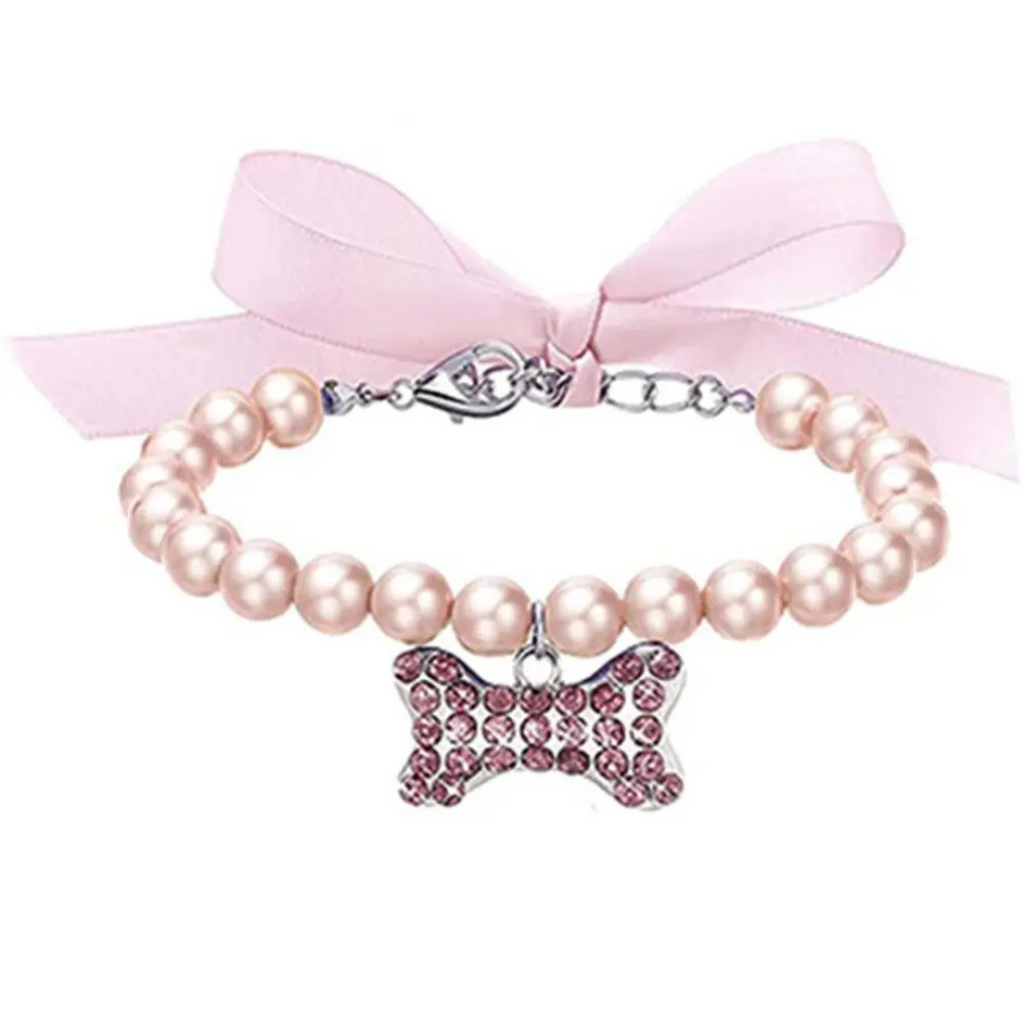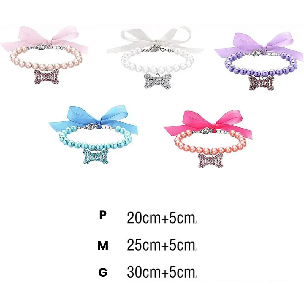 Colar de Pérolas Elegante com Pingente para Cachorros