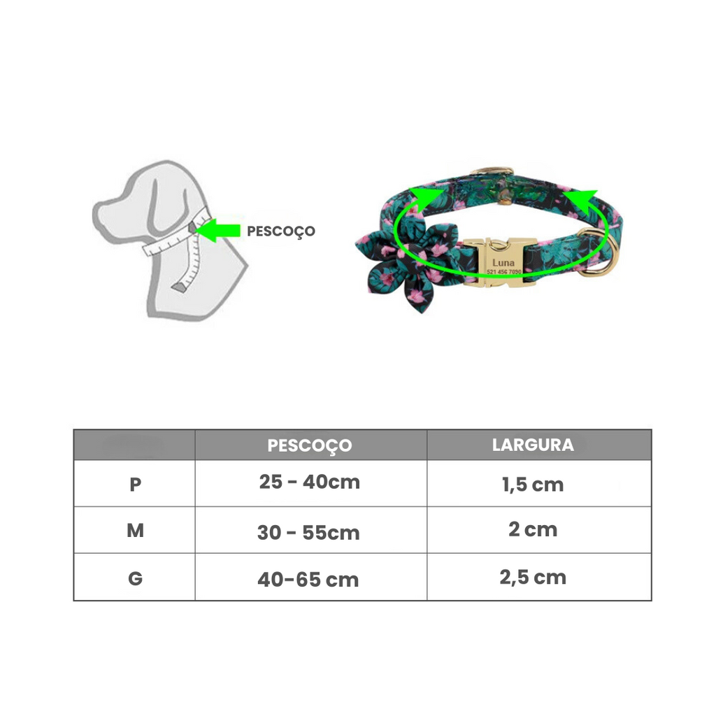 - Personalização Única: O nome do seu pet sempre visível, garantindo identificação estilosa.
