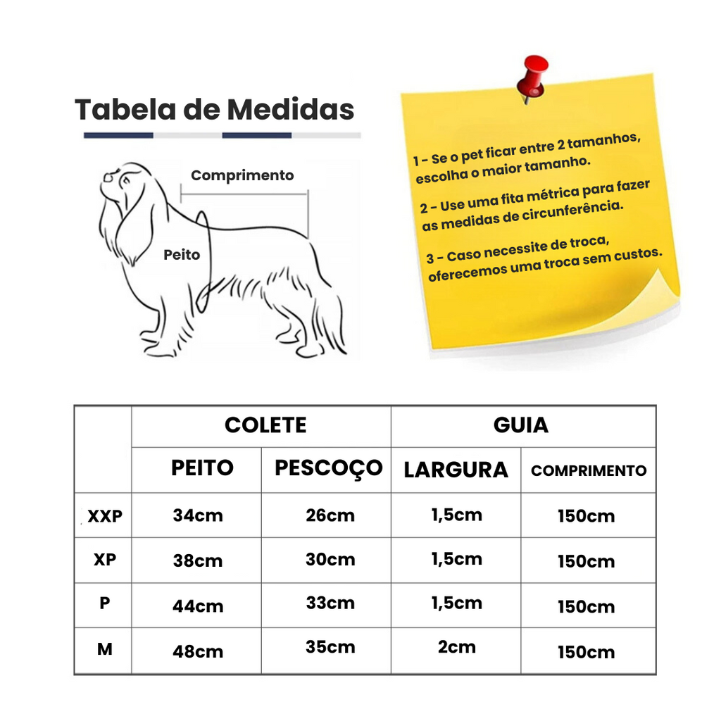 O Colete Peitoral Acolchoado com Guia é mais do que um acessório; é a solução para quem busca praticidade e pequenas conquistas em cada passeio. Leve seu pet a novas aventuras com total conforto e segurança. Adquira já o seu e transforme os momentos juntos!