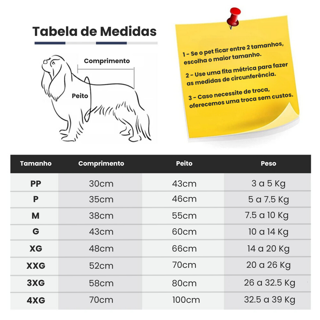 • Conforto garantido: Tecido macio que abraça o corpo do seu pet.