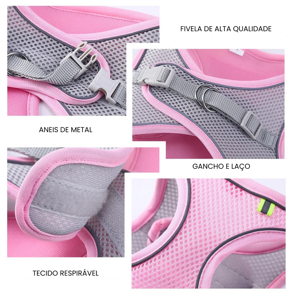 - Facilidade: Conexão simples da guia ao peitoral, permitindo que você e seu pet estejam prontos em instantes.