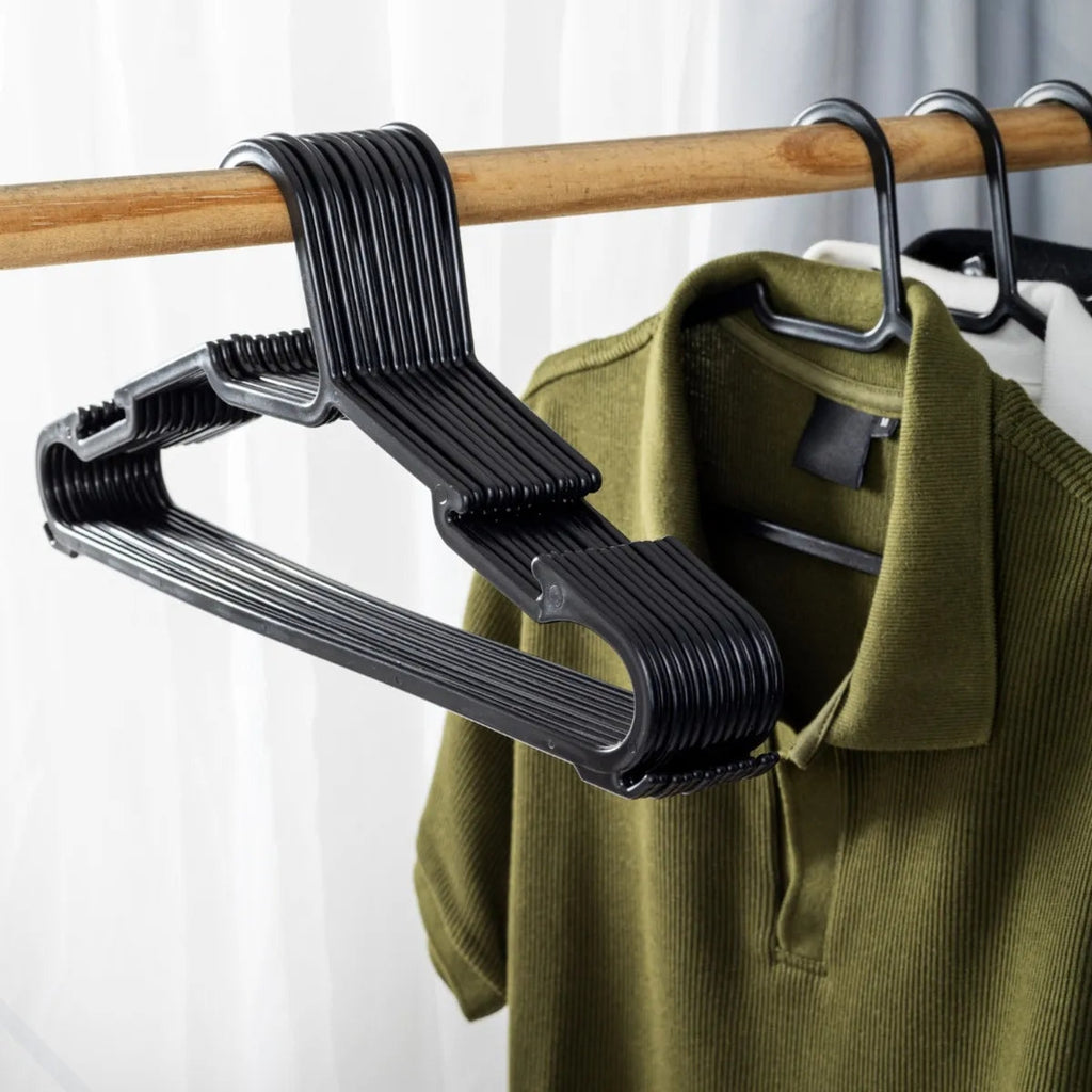 Descubra a sensação de abrir seu guarda-roupa e encontrar cada peça exatamente onde deveria estar. Com o Kit 60 Cabides Antideslizantes Reforçados, suas roupas estarão sempre no lugar certo, prontas para serem usadas.