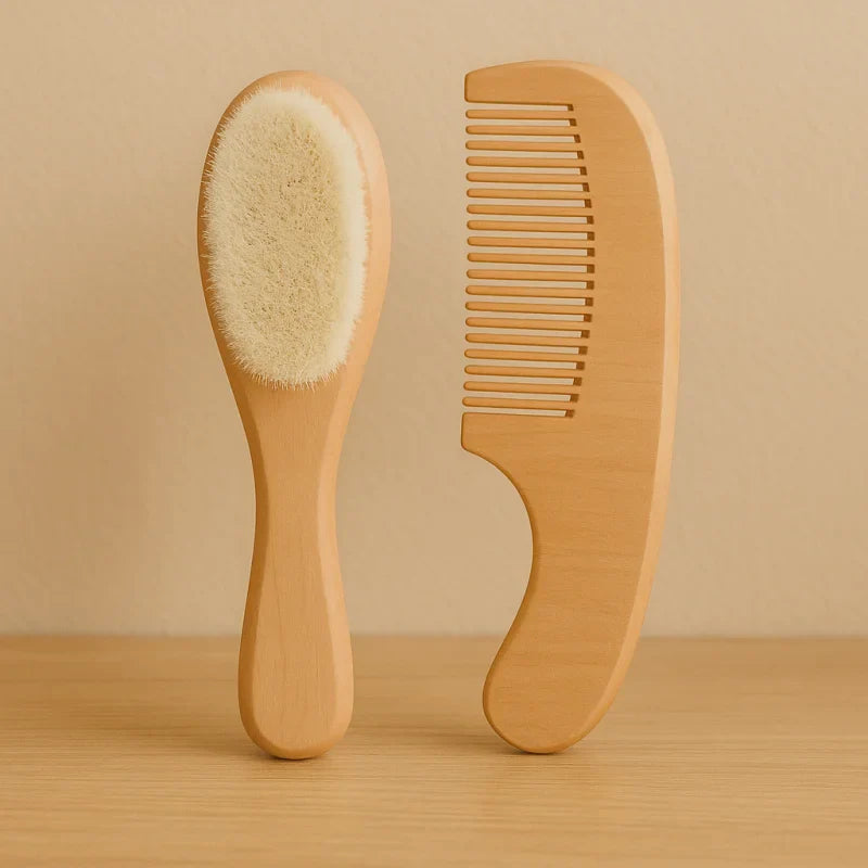 Conjunto Infantil de Escova e Pente em Madeira Natural Lenogue – Cuidado Suave Para os Pequenos