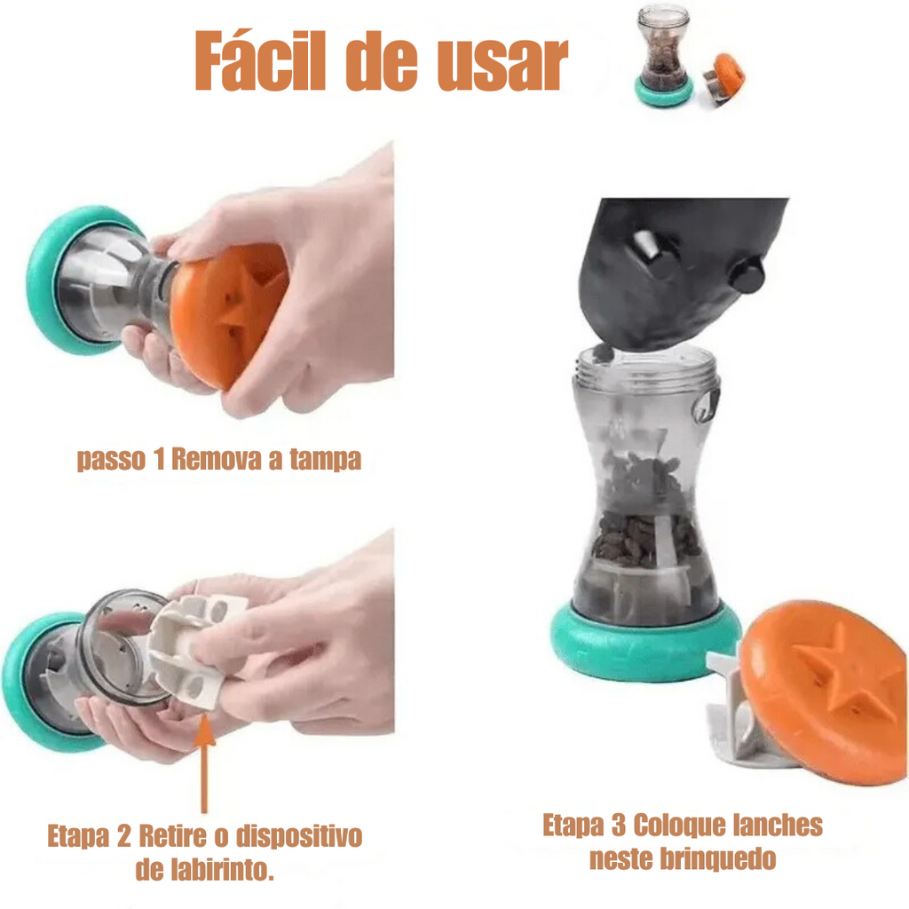Imagine seu pet se divertindo enquanto exercita a mente e o corpo. Com cada interação, o som dos petiscos caindo traz satisfação e alegria, transformando o brincar em uma verdadeira aventura de descoberta.