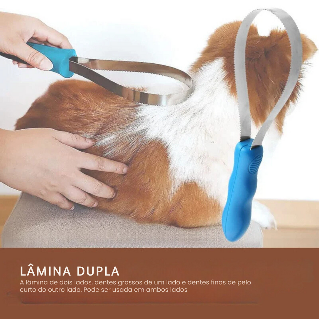 • Função: Lâmina dupla face com dentes grossos e finos para remoção de pelos e limpeza da pelagem.