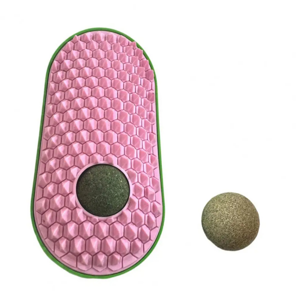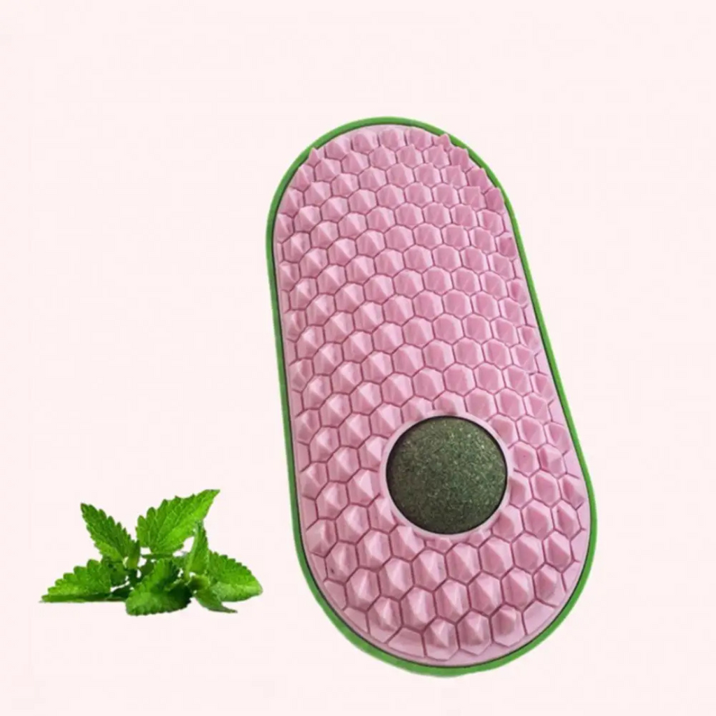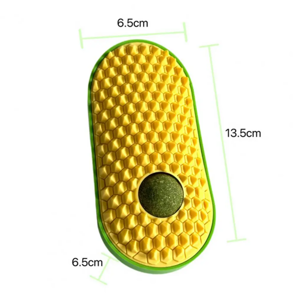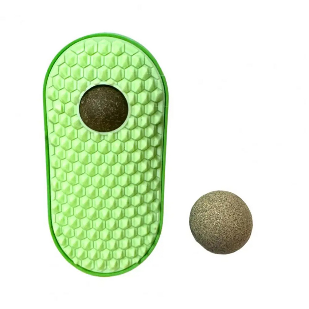 - Design: Escova fixável em paredes e cantos, com bola de catnip inclusa