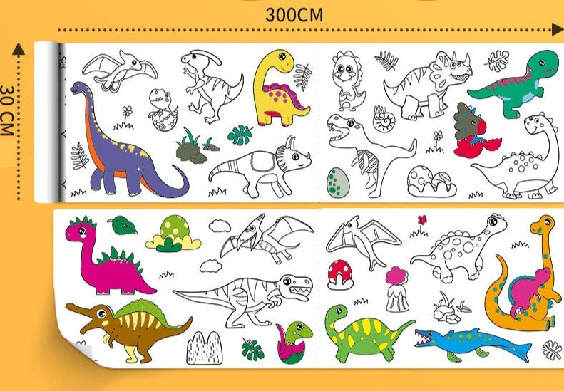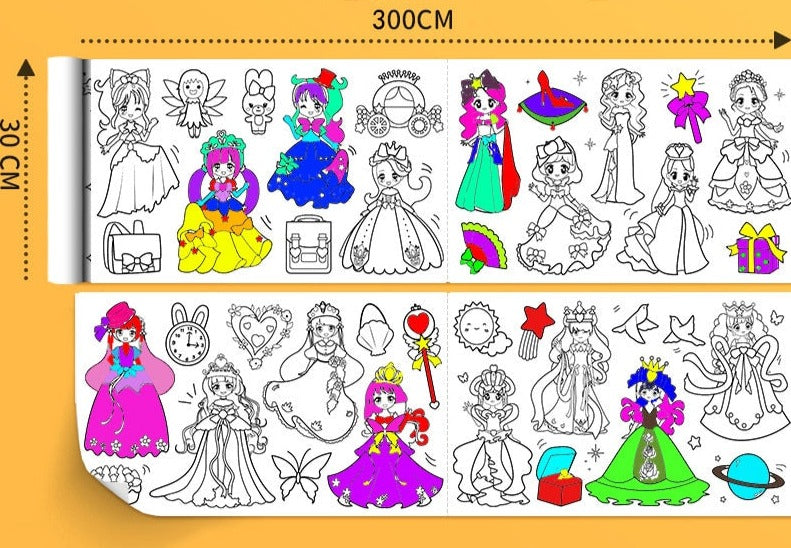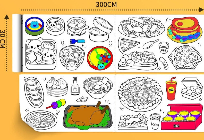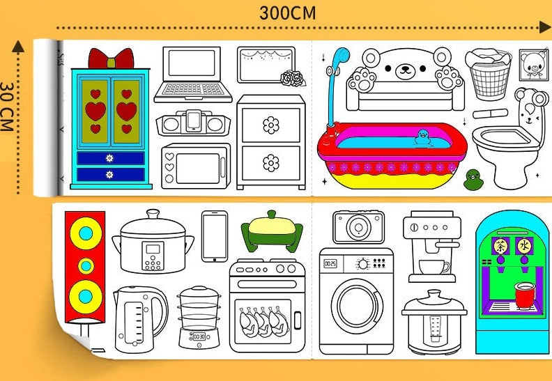 - Tamanho: 3 metros de papel adesivo com 1.000 desenhos para serem pintados.
