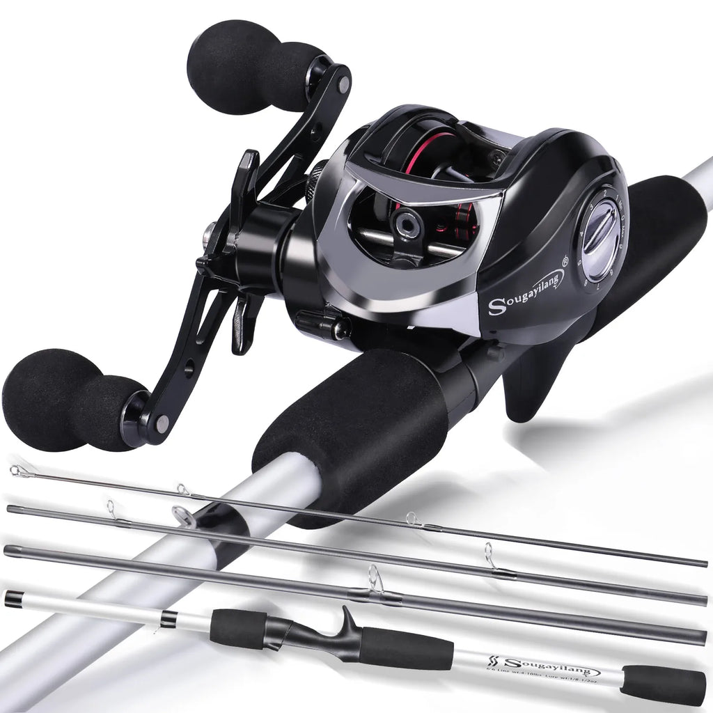 Aumente suas chances de sucesso na pesca com o Kit de Pesca Sougayilang. A carretilha de alta performance possui duas opções de velocidade (6.3:1 ou 7.2:1), garantindo mais precisão e agilidade no recolhimento da linha. A vara leve de 1,98m possui uma força de 8kg, proporcionando uma pesca eficiente e emocionante.