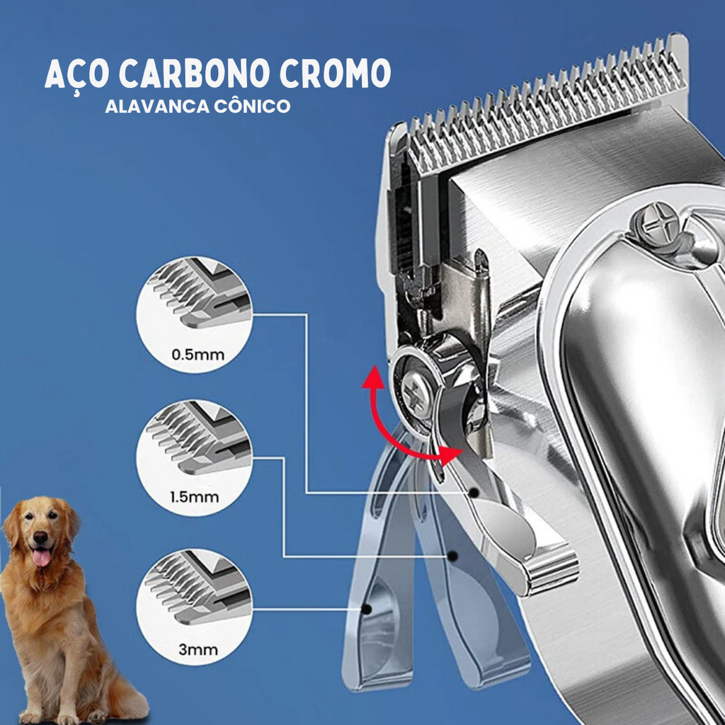 - Conforto: Lâminas de aço carbono que não irritam a pele do seu pet.