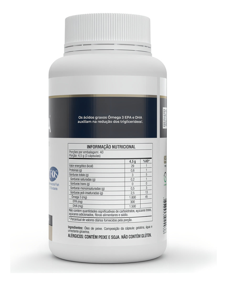 MEGA DHA® é um suplemento alimentar de óleo de peixe em cápsulas, ideal para quem busca uma fonte concentrada de ácidos graxos essenciais. Com 1.500 mg de ácido docosaexaenoico (DHA) e 300 mg de ácido eicosapentaenoico (EPA), este produto é extraído por um processo de alta tecnologia, garantindo pureza e isenção de metais pesados, conforme certificado pelo Programa Internacional de Padrões de Óleo de Peixe (IFOS™). É livre de glúten e lactose, tornando-se uma opção segura para diversas dietas. Além disso, é adequado para gestantes e lactantes, com um sabor neutro que facilita a ingestão. Cada pote contém 120 cápsulas, proporcionando 40 porções de 4,5g cada, ideal para o uso nutricional e esportivo. A marca Vitafor assegura qualidade e eficácia, sendo uma escolha confiável para quem deseja complementar sua alimentação com ômega 3.