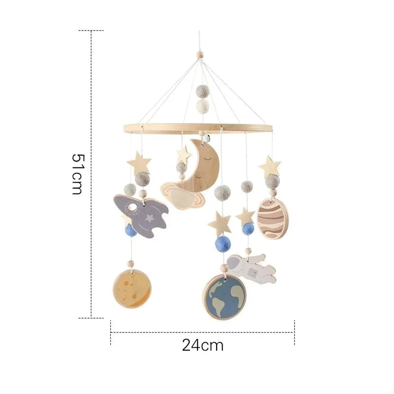 O Móbile de Berço de Madeira com Sino para Bebês Lenogue traz harmonia ao ambiente, proporcionando um gentil movimento e um som relaxante. Seu design delicado encanta a visão, enquanto suas formas geométricas estimulam a curiosidade do seu pequeno.