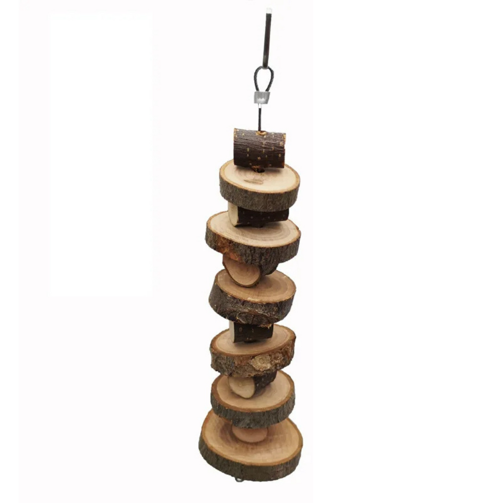 Imagine seu papagaio explorando cores vibrantes enquanto se diverte com o Brinquedo de Mastigação. O som suave da corda se movimentando ao vento e a textura da madeira oferecem uma experiência única, mantendo seu amigo de penas ativo e feliz.