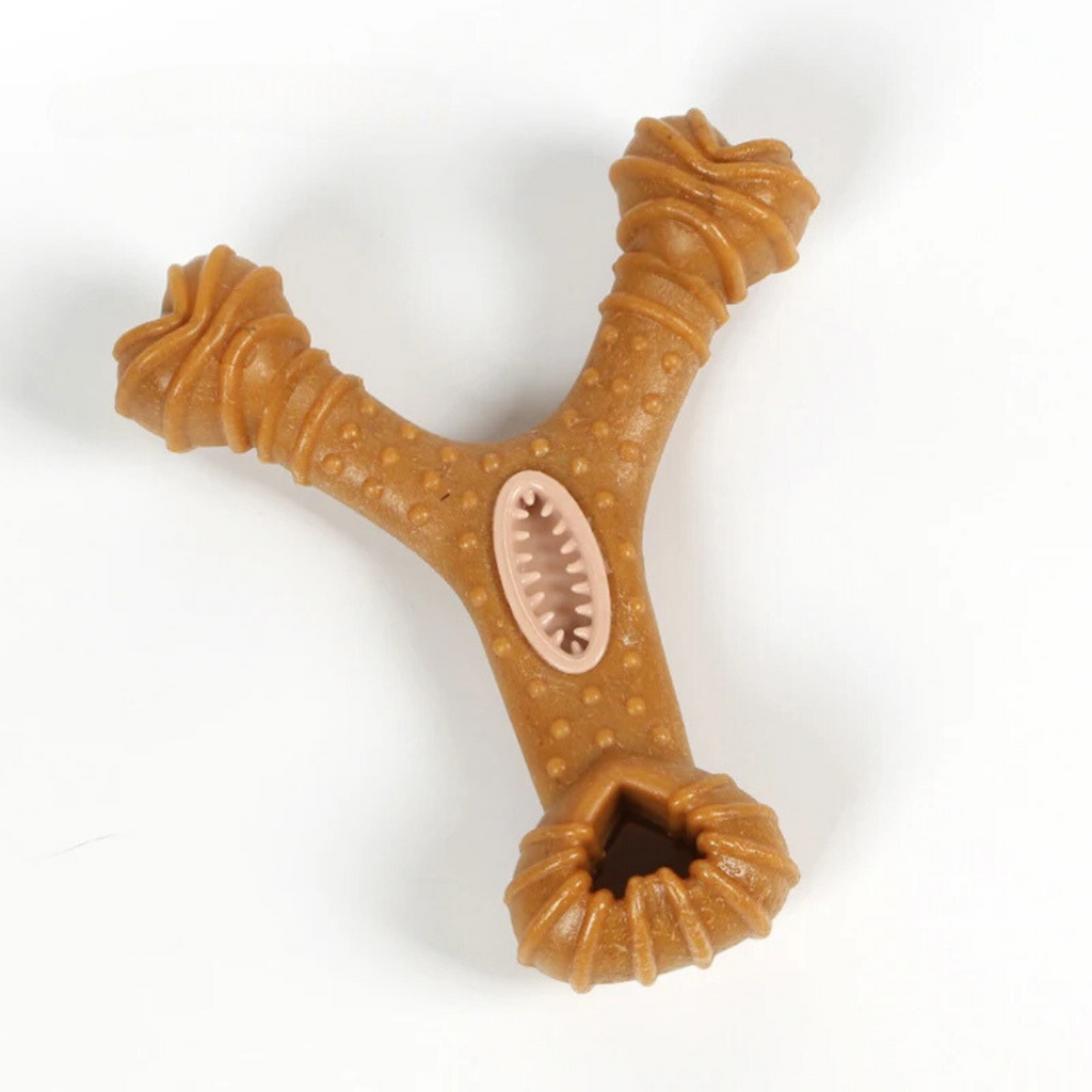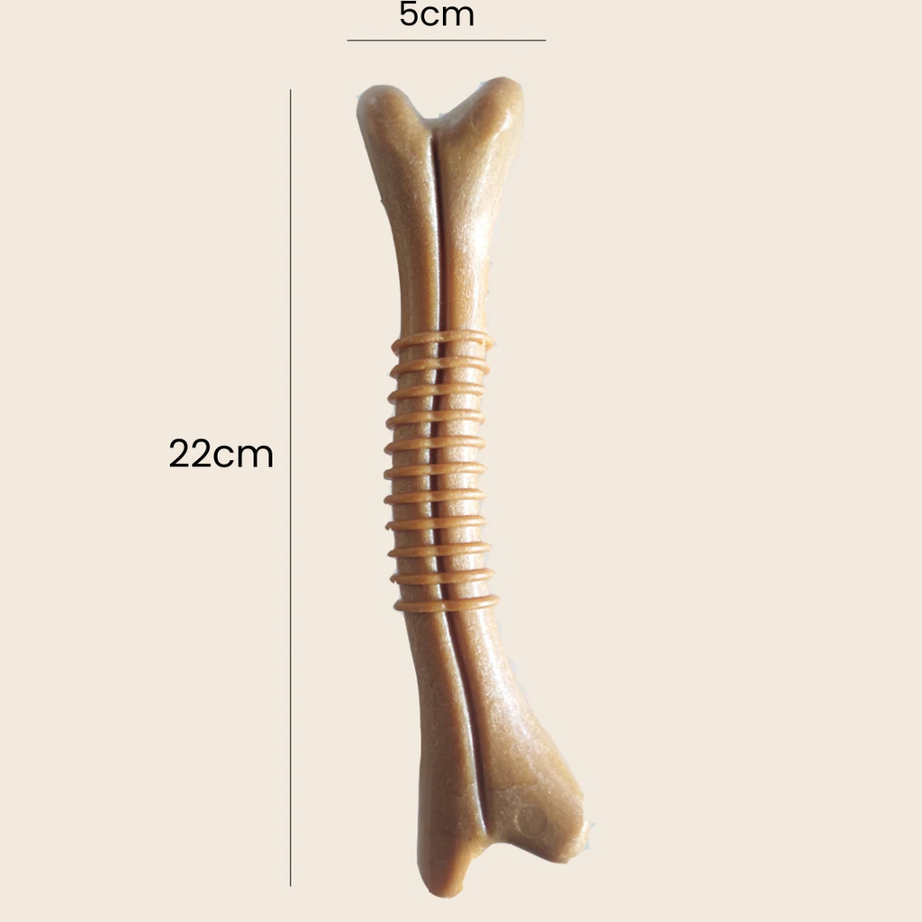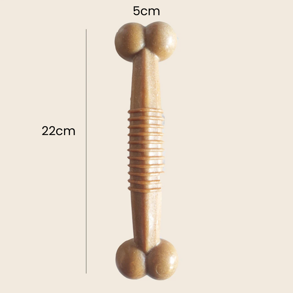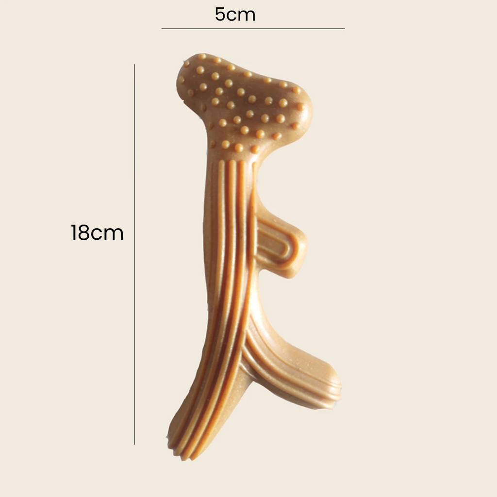 - Simulação Realista: Design que imita madeira, atraindo a atenção do seu cão e incentivando o instinto natural de mastigar.