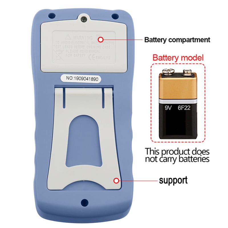 O medidor A830L é um multímetro digital portátil 31/2 para medir tensão CA / CC e corrente CA / CC, resistência, diodo, transistor, frequência, temperatura, capacitância e teste de continuidade com bateria.