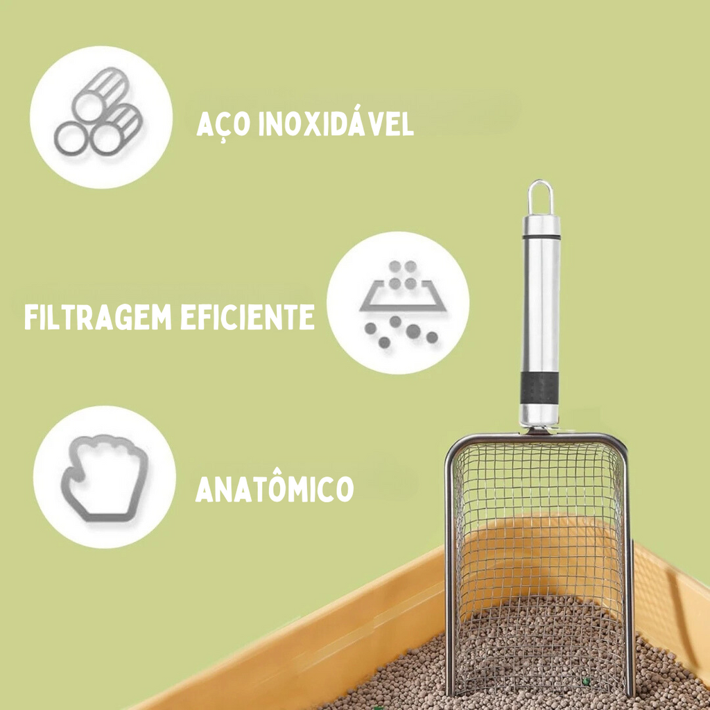 Imagine a praticidade de limpar a caixa de areia do seu gato com um simples movimento. A Coletora de Cocô de Gato em Aço Inox transforma essa tarefa em um momento ágil e sem estresse, tornando a limpeza do lar mais leve e rápida.