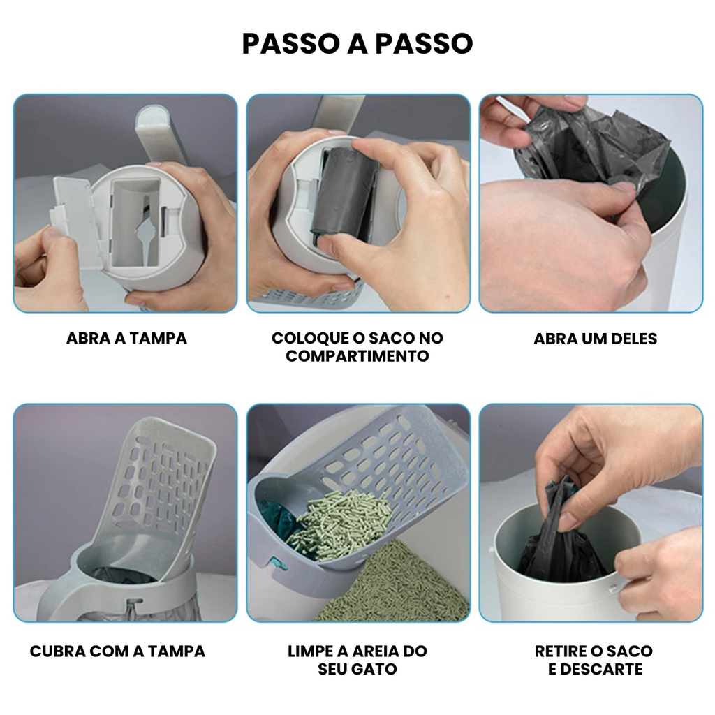 Experimente a sensação de uma limpeza rápida e sem contato direto com os resíduos. Com a Colher de Lixo de Gato com Saco de Recarga, a tarefa do dia a dia se torna simples e eficiente, permitindo que você mantenha o espaço do seu gato livre de odores.