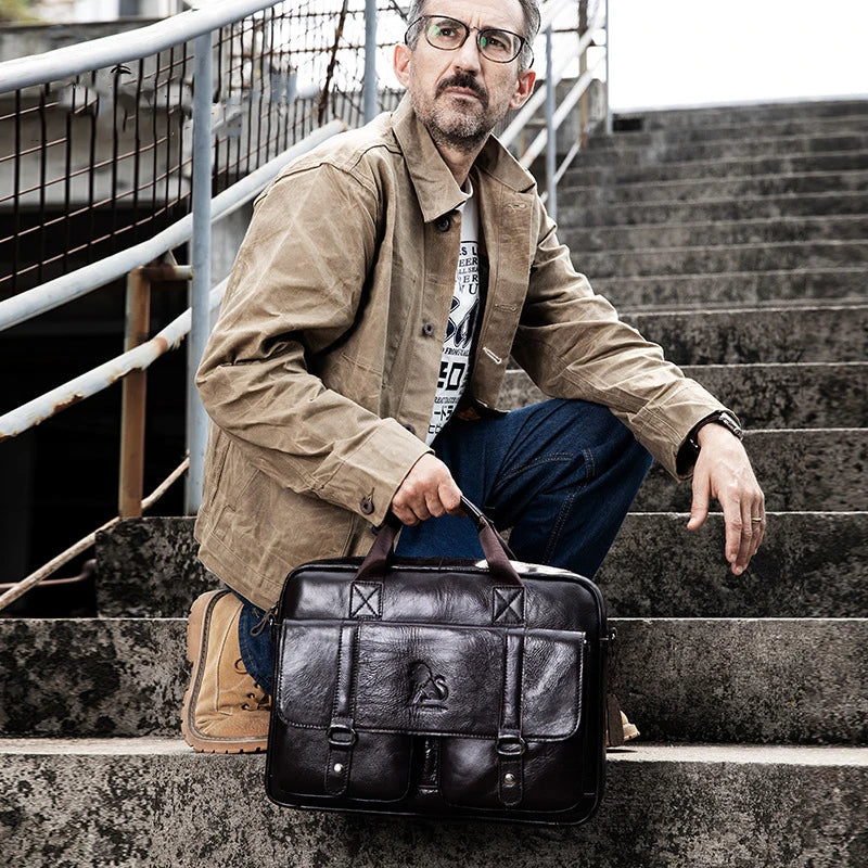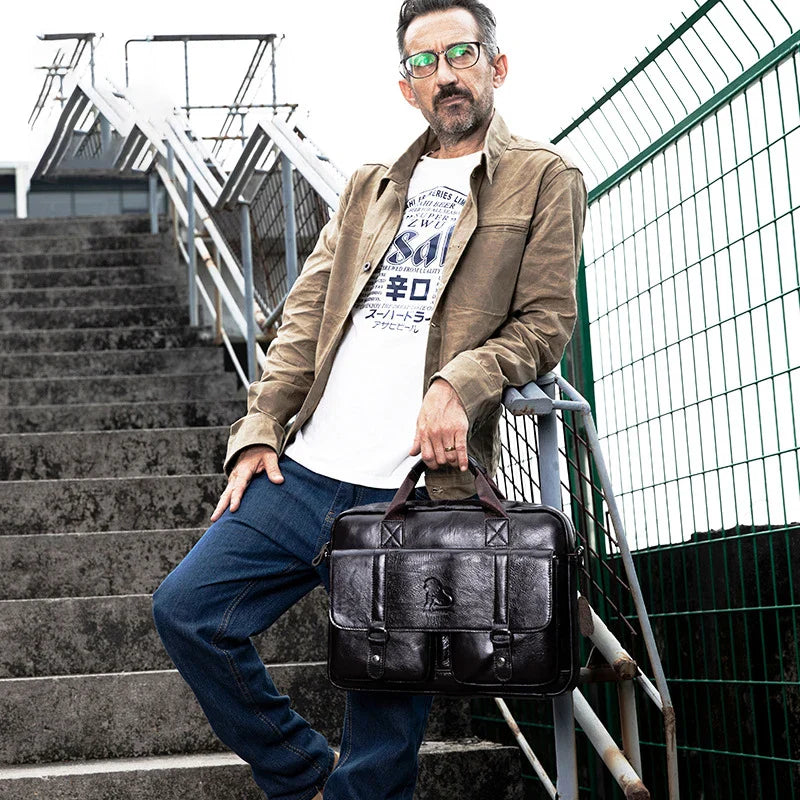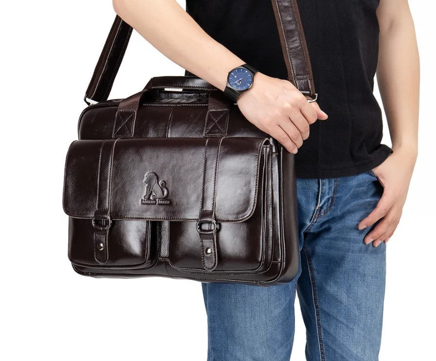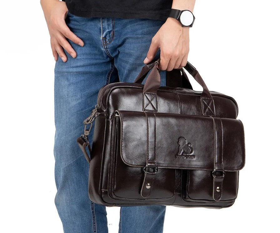 Enriqueça seu estilo profissional com a Pasta Executiva Masculina em Couro Leon. Feita com couro de alta qualidade e design elegante, esta pasta oferece praticidade e sofisticação para reuniões de negócios e eventos formais. Transporte seus documentos e dispositivos com segurança e estilo.