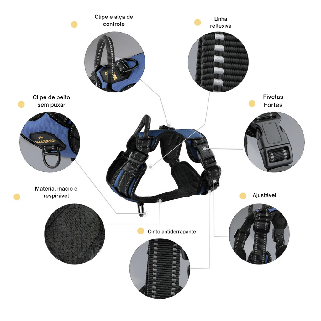 Com o Peitoral MASBRILL Antipuxão, cada passeio se torna uma experiência mais leve e agradável. Você sentirá a diferença ao ver seu cão caminhando confortavelmente ao seu lado, pronto para explorar o mundo.