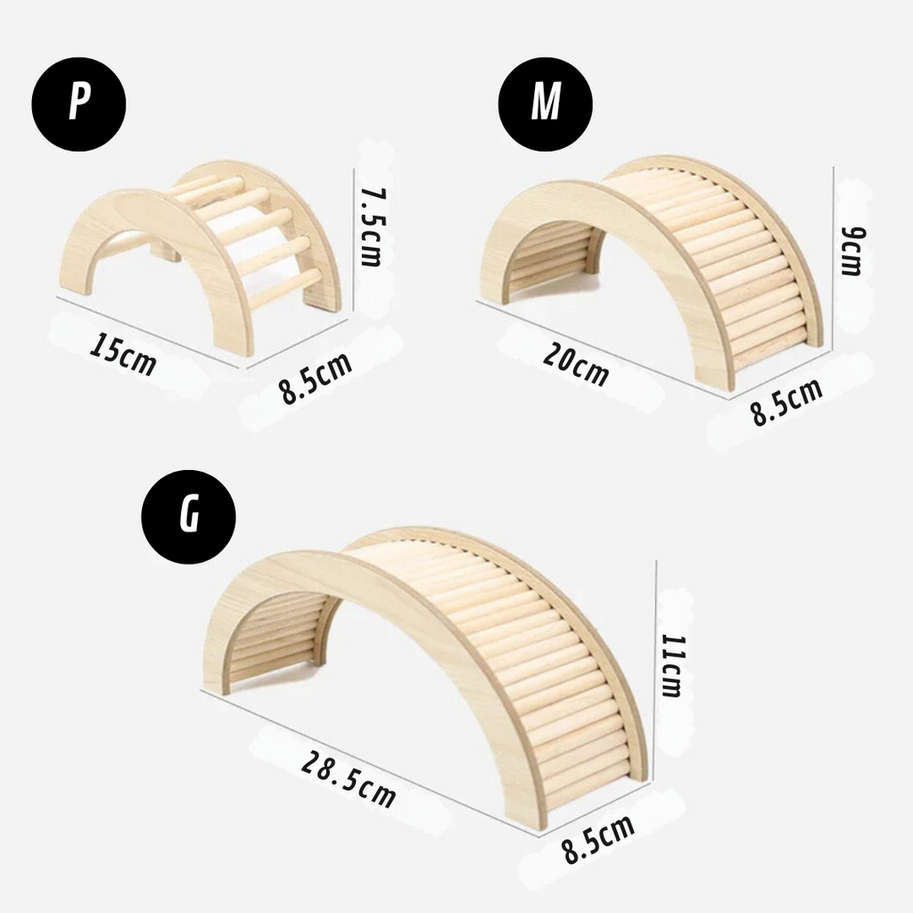 Descubra como a nossa Ponte de Madeira para Hamster transforma o espaço dos seus pequenos animais de estimação. Com um design em arco que estimula a exploração, seu pet encontrará diversão e exercícios em um só lugar.