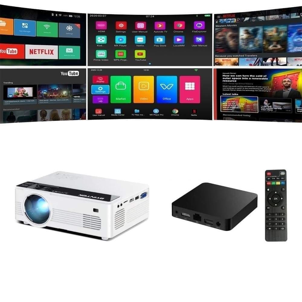 É o mais recente sistema operacional Android 10.0! São 2gb + 16gb (velocidade de processamento e memória mais rápido). Ele suporta 4K de resolução e wi-fi para smartphone. Os outros projetores não conseguem suportar resoluções 4K por não terem processamento e memória suficiente.