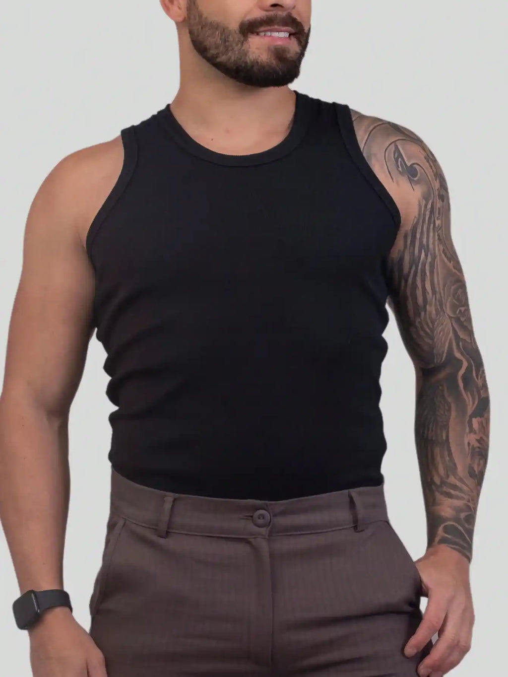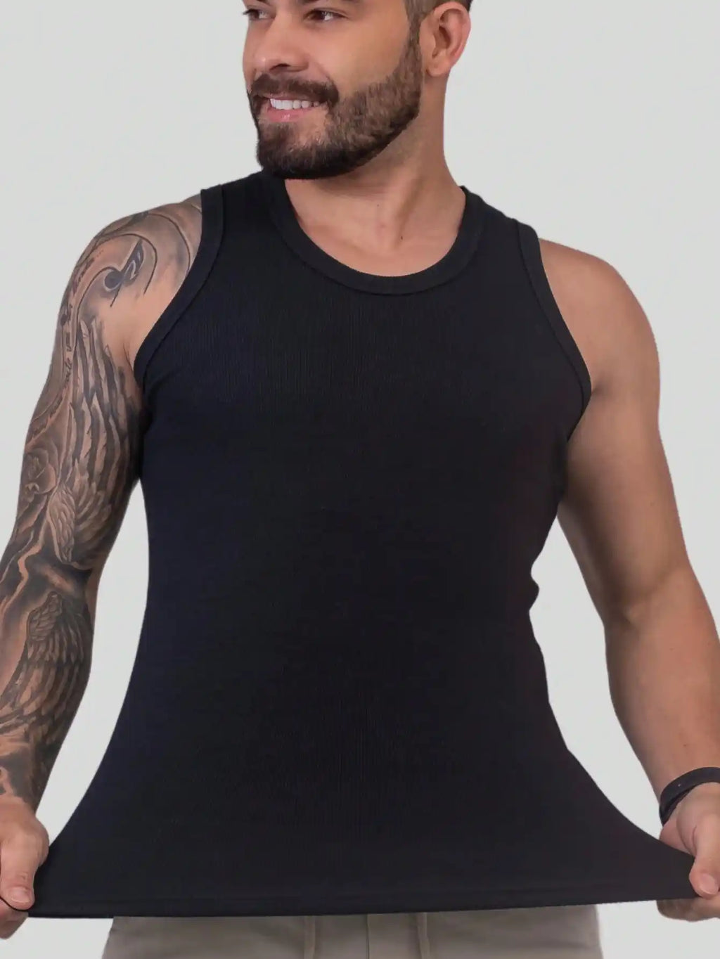 A Regata Canelada Masculina Americana Preta garante estilo e conforto para o seu dia a dia. Feita com tecido canelado de alta qualidade, essa regata é ideal para adicionar um toque moderno ao seu look. Perfeita para diversas ocasiões, do casual ao esportivo.