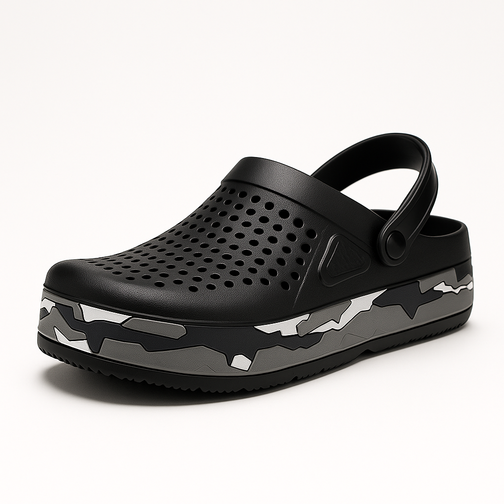 Sandália de pesca com estrutura impermeável e solado antiderrapante, desenvolvida para oferecer estabilidade e conforto em ambientes úmidos e escorregadios.