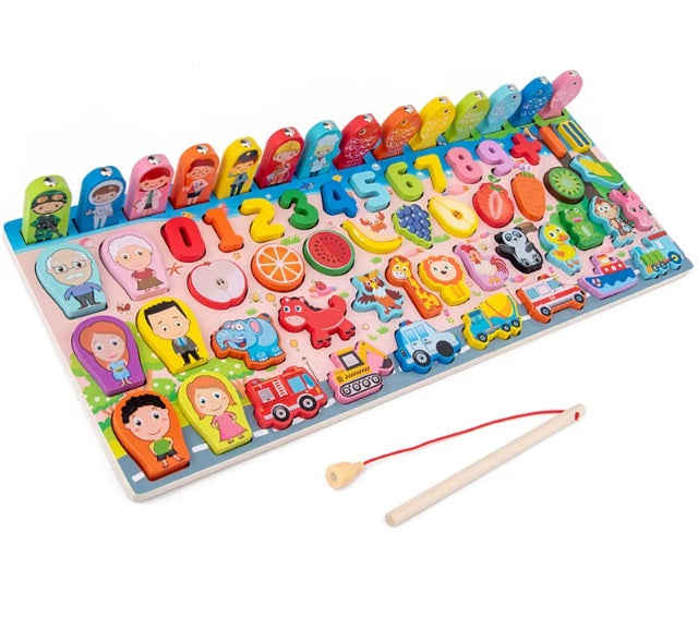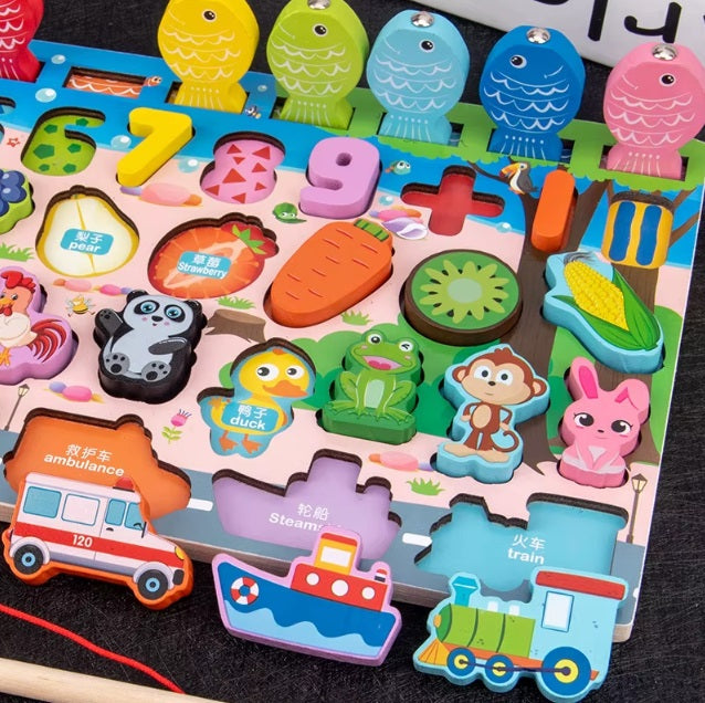 - Elementos inclusos: Letras, números, formas geométricas e animais