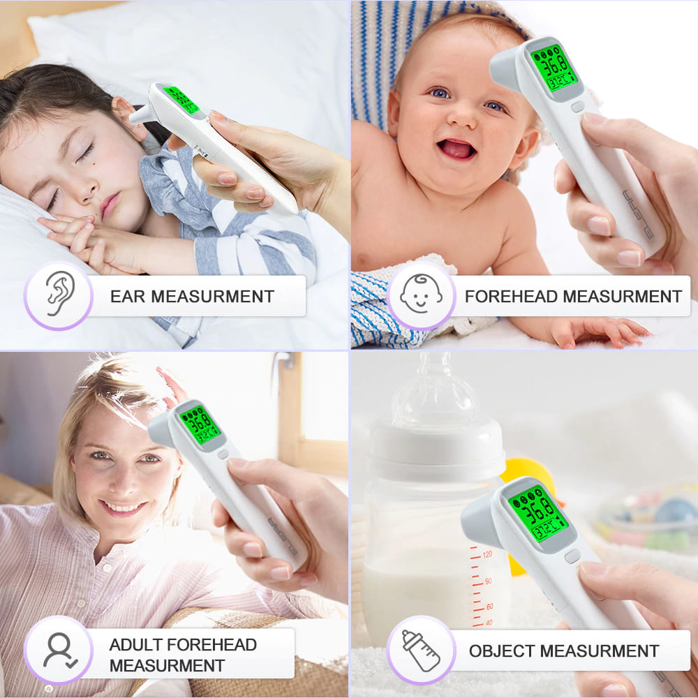 Medição rápida, cerca de 1 segundo, com extrema precisão pela testa e orelha. Aparelho de uso profissional para bebês, crianças, adolescentes, adultos, idosos e objetos.