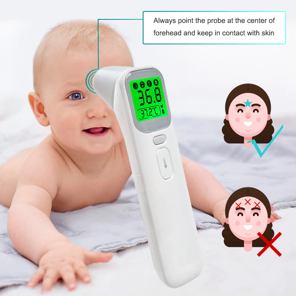 O aparelho realiza medições de temperatura corporal sem contato, ao toque de um botão. Além disso, também pode ser usado para medir a temperatura da superfície dos objetos que não podem ser medidos por termômetros tradicionais (com contato).