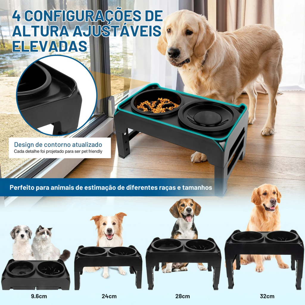 Transforme o momento das refeições do seu melhor amigo em uma experiência agradável e saudável. Com as Tigelas Elevadas para Cães 2 em 1, seu pet desfrutará de uma alimentação mais natural e sem esforço.