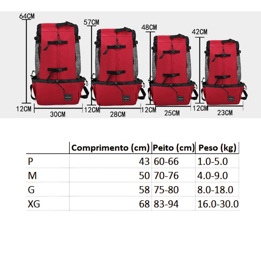 - Ergonomia Pensada: Alças ajustáveis para maior comodidade do tutor e do pet.