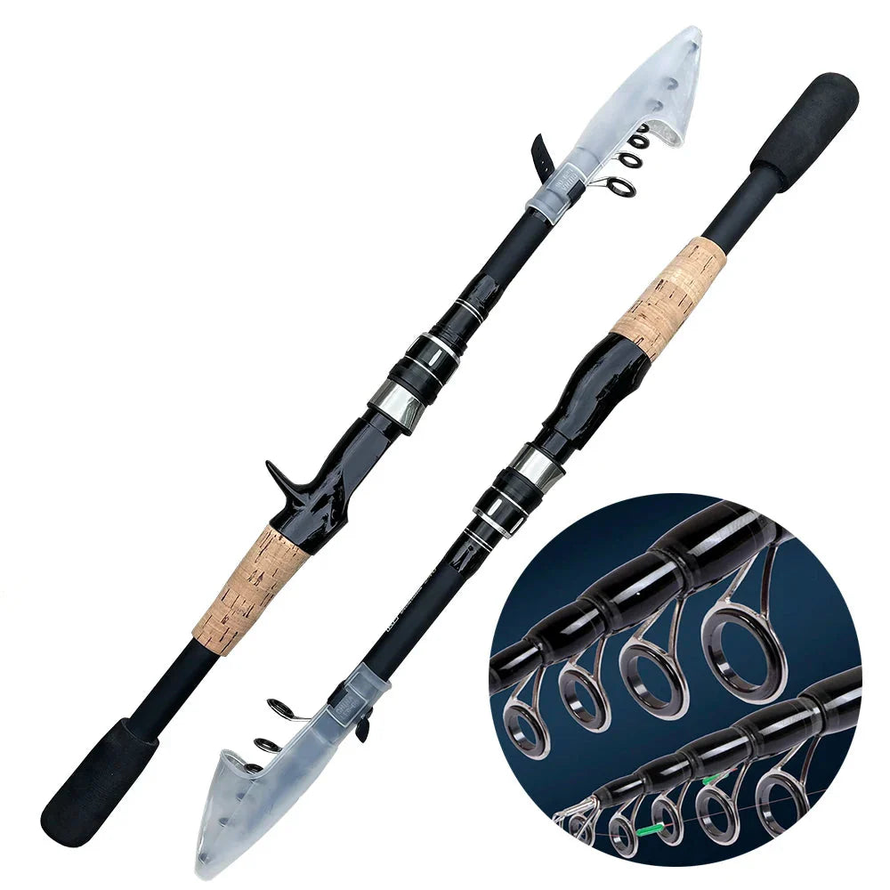 Vara de Pesca Telescópica Kingpesque de Carbono 1.5m a 2.4m - Leve e Compacta